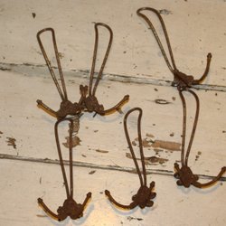 6 ÄLDRE VÄGGKROKAR MED FINA DETALJER.