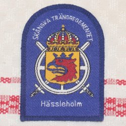 SKÅNSKA TRÄNGREGEMENTET HÄSSLEHOLM. TYGMÄRKE.