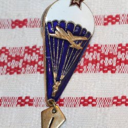 EMALJERAT MÄRKE MED FALLSKÄRMHOPPARE. SOVJET.