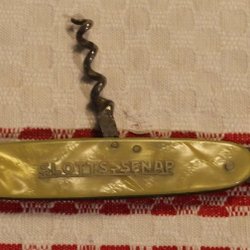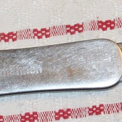 ÄLDRE FÄLLKNIV MED REKLAM: SLOTTS SENAP , KUNGS ÄTTIKSPRIT
