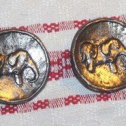 2 ÄLDR KNAPPAR PRYDDA MED ELEFANTER.