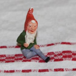 ÄLDRE SITTANDE TOMTE. H. 4.5 CM.