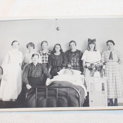 ÄLDRE FOTOGRAFI. SKÖTERSKA VID SJUKSÄNG. MÅLILLA. 1922.