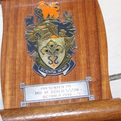 EMALJERAD SKÖLD. SCIENTIA MUNIT. SYDAFRIKAS SÄKERHETSTJÄNST.