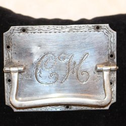 ANTIKT BESLAG , DRAGHANDTAG MED VACKER DEKOR. SILVER