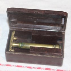 ÄLDRE RAKHYVEL GILETTE MED ASK AV BAKELIT
