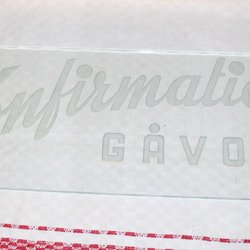 ÄLDRE SKYLT AV GLAS MED ETSAD TEXT. KONFIRMATIONS-GÅVOR.