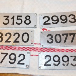 6 ÄLDRE SKYLTAR FRÅN TÅGVAGNAR.