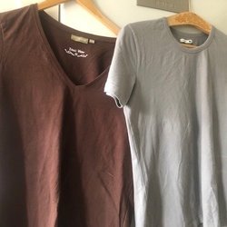 2 Stretchande Kortärmade Toppar - Brun V-ringad + Grå Rundhalsad 44-46 L-XL