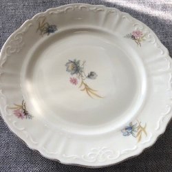 Gammal Kaffeassiett Rörstrand 462 Rosa och Ljusblå Blommor Bladguld