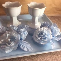 Ljusblått Dop Pojke Melaminfat Ljuslyktor Ljusmanschetter/Rosor