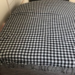 Vintage Svartvit Köksrutig Duk eller Sjal med Frans - 3 små, små Hål - Billigt
