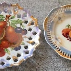 2 st Äldre Mycket Vackra Gallerfat med Frukt och Bär - Samma Färgställningar