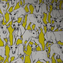 Tavla / väggdekoration. Miina Äkkijyrkkä, kalvar på grönbete. Marimekko.