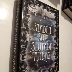 biblioteksmärken eller -stämplar på varan.)