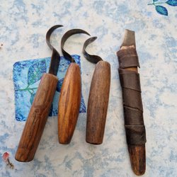 Träsnideriverktyg med böjda blad och trähandtag