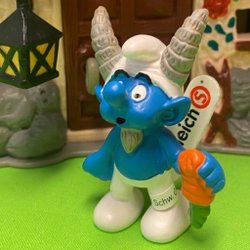 Smurf med kratta och gul stråhatt....fin gammal smurf…..