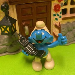 Populär smurf som pratar i mobiltelefon …..lågt utrop…