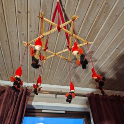 Julgransprydnad Halmstjärna med Tomtar