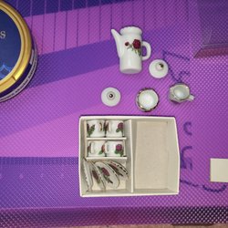Miniatyr Porslin Teservis med Rosmotiv,se annons