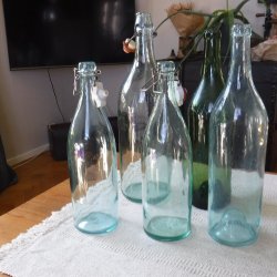 Retro 5 st glasflaskor varav 2 är kinnekulle flaskor