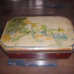 Sliten vacker plåtburk från Örebro kex