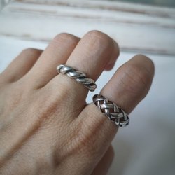 2 st Justerbara Silverringar pläterad - Flätad Design