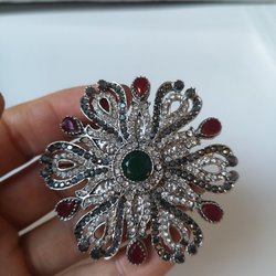 Röd, grön, silverfärgad brosch