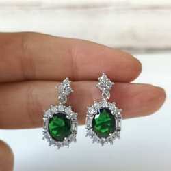 Eleganta örhängen med smaragdgrön sten