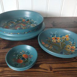 3 Norska rosmålade fat skålar. Rosemalt bolle, rosemaling, ølbolle, Svinesund
