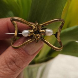 Vintage brosch rosett med pärlor – elegant smycke