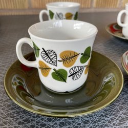 4 kaffekoppar med fat Gefle Bladranka Berit Ternell