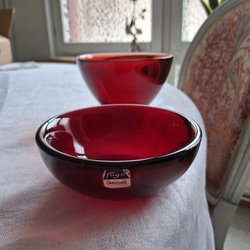 Orrefors Fuga skålar och fat i rött glas