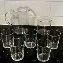 Mått kanna och glas i tunnglas.