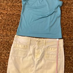 Turkos Linne och gul minikjol står 38/40