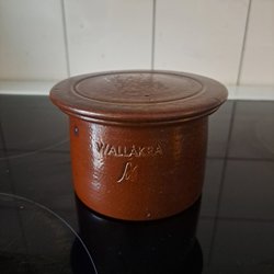 Wallåkra, Vallåkra. Ovanlig burk med lock. Signerad.