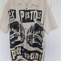 Dragonfly Clothing Company beige, svart och vit skjorta, storlek L
