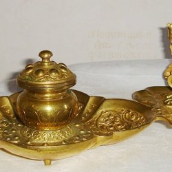Antikt bläckställ med tändsticks ask hållare, mässing.