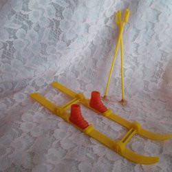 Tillbehör Barbie/Sindy skidor m stavar pjäxor skridskor öronmuffar vinterjacka.