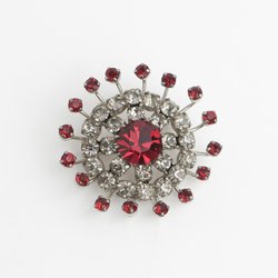 Vacker Gammal Brosch Med Röda och Vita Stenar/Glas