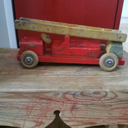 Träbrandbil med stege - Vintage leksak