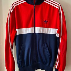 Vintage Adidas röd, vit, marinblå jacka