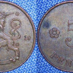 10st Mynt Finland 1, 5 & 10 Penniä 1918-23 & 1935-38