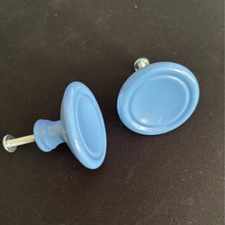 Två mellanblå möbelknoppar
