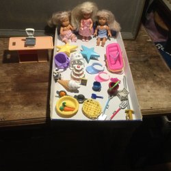 3 små dockor med 28 tillbehör.