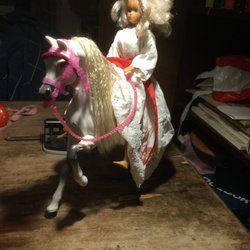 Docka i Barbie-storlek med häst. Lucia
