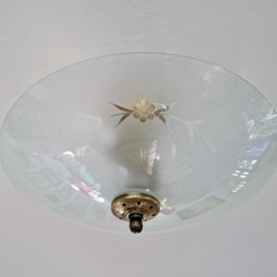 Taklampa i glas med mässingsdetaljer