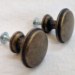 2 möbelknoppar, antikbehandlad mässing