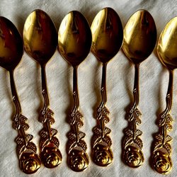 6 st guldfärgade teskedar med rosmotiv