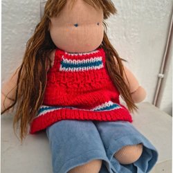 Handgjord Waldorf docka med stickade kläder